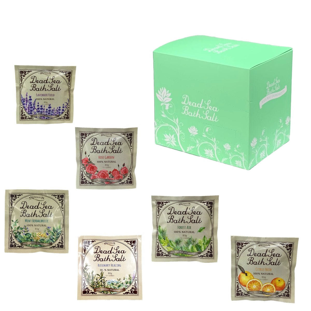 ミネラリア デッドシーバスソルト 80g 天然アロマアソートセット(6個入り)